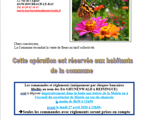 Opération commande groupée de fleurs réservée aux habitants de Bourbach-Le-Bas.