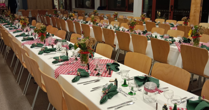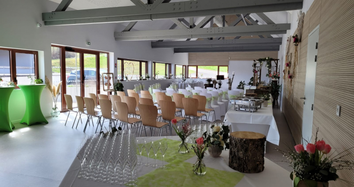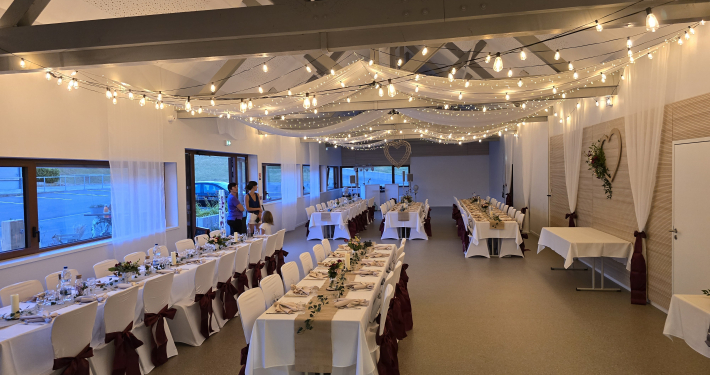 Située dans un environnement exceptionnel, la salle du Lierenbuckel rénovée en 2022, vous accueillera pour tous vos événements, fêtes de familles, mariages, etc… D’une capacité de 175 personnes, dotée d’une cuisine professionnelle avec chambre froide et tous les équipements, ustensiles et vaisselle nécessaires pour préparer vos repas ou faciliter le travail de votre traiteur, elle vous permettra de simplifier l’organisation de votre évènement. Un bar équipé d’une tireuse à bière, d’armoires réfrigérées ; un chauffage/climatisation par pompe à chaleur ainsi qu’une centrale de traitement d’air, viennent compléter l’équipement pour plus de confort. La salle est accessible aux PMR.